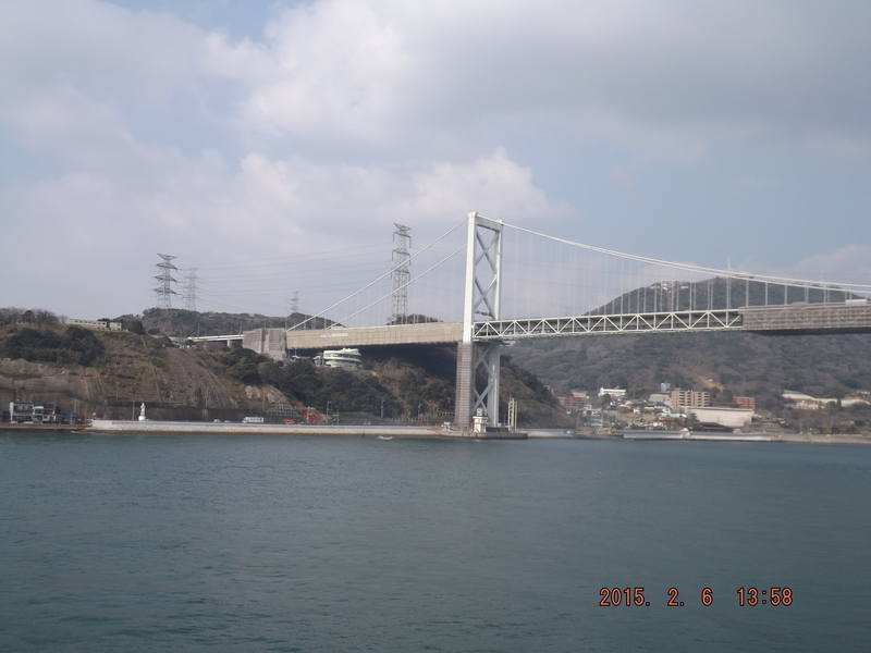「平家滅亡の地とされる下関壇ノ浦古戦場。関門大橋の向こうあたりの海域である。」