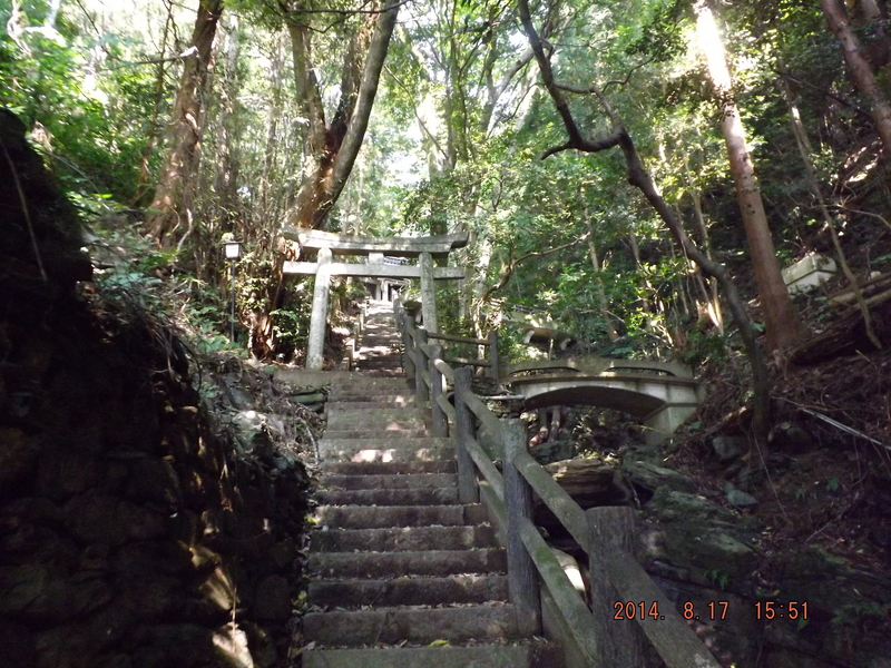 「伊方町にある八坂神社の山道。住宅地の裏山ながら来訪者には非常にわかりづらい場所にある。」