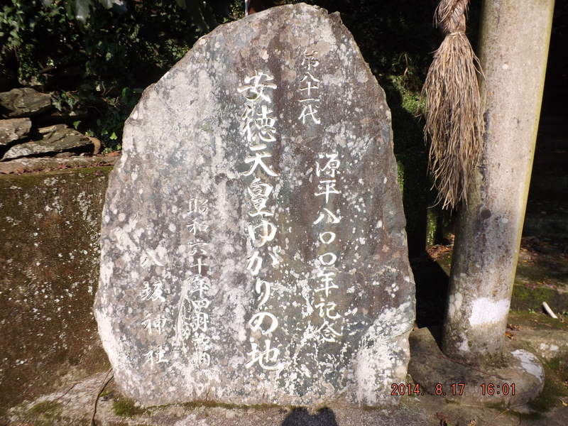 「鳥居横の「安徳天皇ゆかりの地」の碑。昭和60年につくられている。」