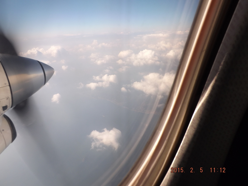 祝島には南岸に道路が無いので、空と海からアタックすることで計画。我ながら物好きも度を越えている(笑)。まずは祝島上空あたりを飛行する松山⇒福岡便に搭乗した。あいにくの曇天で海域には雲がかかっていたが、おおよその地点は把握できた。