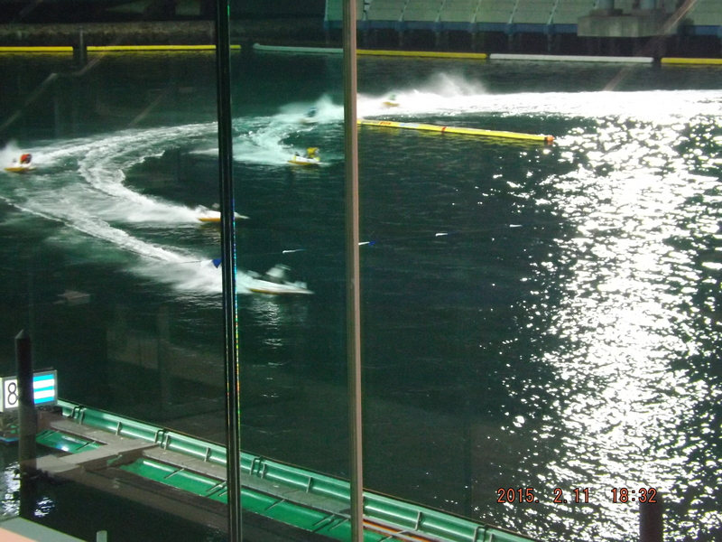 「ナイターでのレースは水しぶきが照明に映えて美しい。」