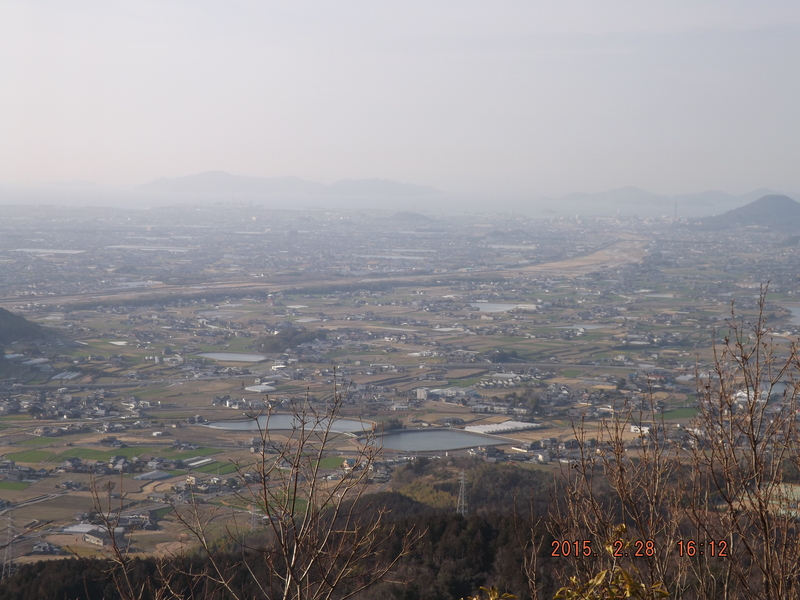「山頂より北西方面を望む。土器側の向こうは丸亀市。その向こうは瀬戸内海塩飽諸島の広島が見える。」
