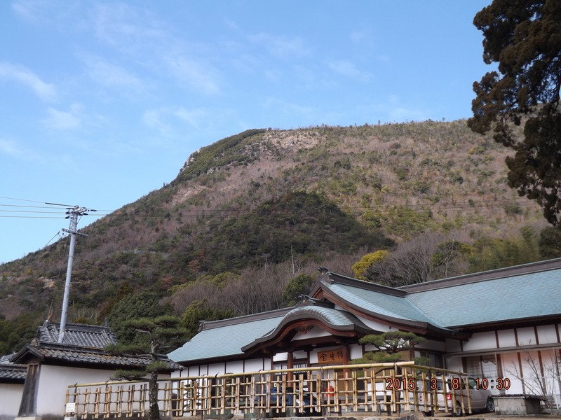 「山の東側にある宝生院の真柏横から見る皇踏山」
