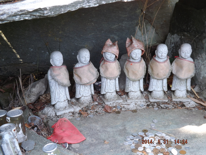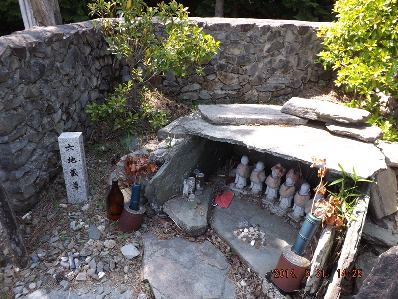 いずれにしても、秘密を守るために関係した罪なき人間を闇に葬るというのは、古今東西の悪物フィクサーの掟であるらしい。日本全国各地に残る言い伝えに、城の抜け道を掘った労役者とか吊天井を作った大工とかが行方不明になった話は枚挙に暇がない。この伝説の真偽は別としても何か悲しいことがあった峠であるらしいことは、6つのお地蔵様が語りかけている。自然と手を合わせてしまう場所である。
